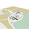 結果的に、施設全体はブリッジのレベル(+195)より下にすべて内包され、アクセスしてくる来園者にその形は見えず、彼らは雄大な自然景観を何にも遮られることなく正面に捉えることになるだろう。施設屋上にあたる広いテラスは「空へのファサード」として計画されており、来園者には、下に降りていく大階段やスロープ、あるいは大きな円弧の花壇といった建築的要素の断片のみが、行為との関連において認められるのみである。これらの大階段やスロープは、来園者を館内や芝生広場に向けて誘導するといった機能的な側面の他に、多様な行為を誘発するための装置として位置づけられており、多様な解釈が可能な建築的玩具としての道具だてにもなっている。