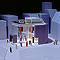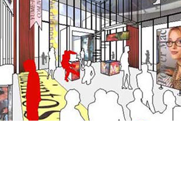 敷地の中だけでプラザをつくるには少々狭いので、敷地をとりまく道路を計画に取り込んでいる。こうして獲得された平面的な広がりはとても程良い都市的スケールを持つ。そしてその中心に、2層分の吹抜け空間を持つガラスのホールを据える。ホールは「プラザ」の中心として四周の道路と一体となって機能し、その活動を都市空間に向けて発信するばかりでなく、この存在を知的に主張するだろう。 このホールの機能は、ホール開館時だけでなく、閉館時においてさらに発揮されることになる。ホールにプライバシーが必要な場合には、高い天井から下がるベルベットのカーテンを優雅に引く。この吸音質のカーテンは、硬質でシャープな都市的な空間を、豊かな音場を持った柔らかいアコースティックな空間に変貌させるに違いない。