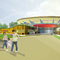 「子供は太陽である」をキーワードに、太陽を象徴し、機能性、防犯性に配慮した中庭形の建築デザインをしている。 円形と不定形の二種類の特徴的な屋根を持ち、不定形の屋根上部は屋上緑化される。