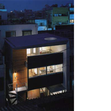 敷地は、幅2mの露地状部分を持った鉤の手状の形をした土地である。軒を接するようにして建つ中層建物によって周囲を取り囲まれた、下町特有の、家屋が密集する雑然とした環境の中にあるが、ただ南側だけは、長く地主と仲違いを続けて、建て替えることも出来ず、またその予定もない借地に建つ木造平屋建て住宅で、この点だけが、この敷地が持つ唯一最大の利点であった。