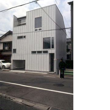 敷地は密集した住宅が建ち並ぶ街区の一角にあって、その面積は50m²(15坪)に満たない。法規的な建築面積を28m²(8.5坪)以下に限定し、さらに北側からは斜線制限が加わる。唯一の救いは、この敷地の南が交通量が少ないのに幅員9mある、割と静かな道路だということくらいだ。