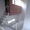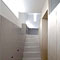 全体は、半階づつずれ上がっていくことで獲得できる一室空間を基本としているが、こうしたのはとても小さなこの敷地にあっては細分化された諸室を階毎に整理してそれを積層させるのではなく、ひとつながりの連続した、しかも流れるような空間として全体を獲得するべきだろうと考えたからだ。結果として全体は、部屋が積層された住宅というよりも、むしろ踊り場が拡張された階段といった様相をもつものになった。