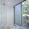 また、南に寄った3階の屋根越しに冬場の太陽光をその軌道のままに取り込むという必要から2階の広間を覆う屋根に「反射板」というアイデアが付加された。取り込んだ光を室内で乱反射させようというわけなのだが、2階の広間だけではなくて3階の個室群も基本的にはこの反射板を使って採光している。この反射板をできるだけ薄くして、外郭から離して浮かせるというのも先の計画の趣旨に合わせたものだ。この反射板は2.3ミリ厚の鋼板を折り曲げてつくったコの字型断面の鋼板パネル(W=600、L=3300、t=75)で、これをボルトでつないでできる全巾11メートルの平滑面をそのまま内部仕上げとしている。この鋼板パネルには断熱材と屋根下地材も組み込まれていて、基本的にはそのまま屋根にもなっている。薄いとはいえ鉄の塊が18枚つながって宙に浮いているわけで、この矛盾したような様態は床を磨いた白い大理石にしたこととも相まってRC打放しの壁に囲まれた箱のなかにあっても奇妙な浮遊感を生むことになった。