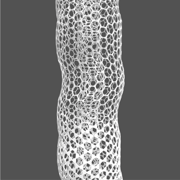 ハニカムチューブ・アーキテクチャー(以下HTAと記す)は、1991年に発見されたナノ構造物であるカーボンナノチューブのイメージから発想された。その六角形をチューブ状に繋げた炭素結合の自己組織化するイメージは、すべての柱が斜めになっていながら梁はひとつおきに繋がっている、高層建築のスケルトン・イメージと重なった。それは、自然を観測し空間化する、建築の歴史の一断面とみることができる。しかし同時に、人工のコンピュータがあって初めて成立する空間モデルであることも記しておかなければならない。コンピュータのシミュレーション・テクノロジーがなければ立案も解析も展開もできなかったであろう。実際、コンピュータ構造解析によりHTAの空間モデルをラーメン建築の空間モデルと比較検討して、前者の短期負荷力に対する構造的優位性を確認している。